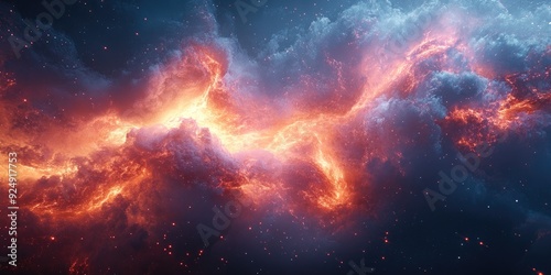 Naklejka premium Fiery Nebula with Red and Blue Stars