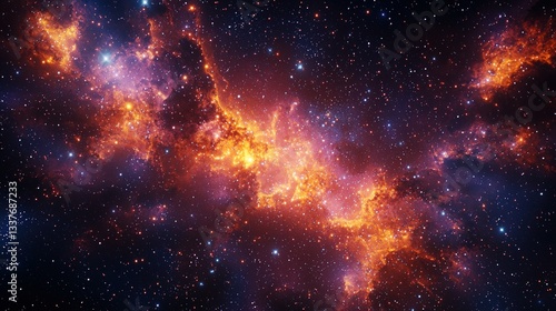 © Edi Purnomo, Naklejka premium Fiery nebula with vibrant orange and red hues in deep space.