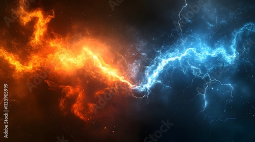 Obraz premium Fiery Orange and Icy Blue Energy Clashing