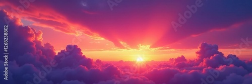 Fototapeta premium Fiery orange and purple clouds bleed across a vibrant twilight sky , sky,...