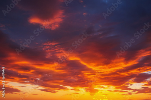 Fototapeta premium Fiery, orange and red colors sunset sky. Beautiful background