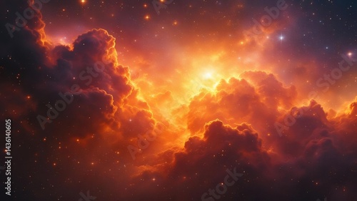 © Artistic Creator, Fototapeta premium Fiery Orange and Red Cosmic Nebula