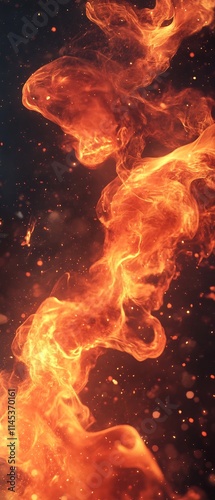 © Anjar Stock, Obraz premium Fiery orange and red flames rising against a dark background with sparks. (1)