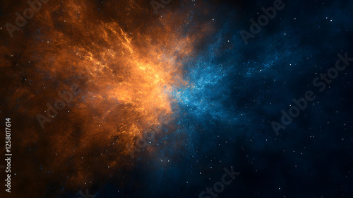 Fototapeta premium Fiery Orange and Serene Blue Nebula Cosmic Collision A Stunning Celestial...
