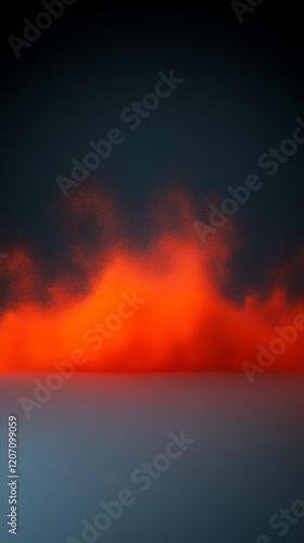© heinng, Fototapeta premium Fiery orange sunset clouds dramatically fill horizon a moody atmospheric scene. AI Generated