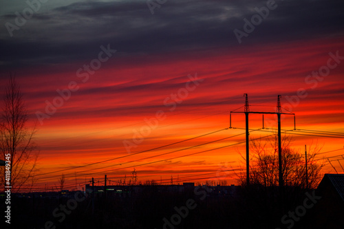 © olgittka, Fototapeta premium Fiery orange sunset sky Beautiful evening scene