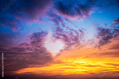 Obraz premium Fiery orange sunset sky. Beautiful sky