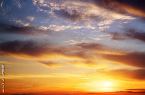 Obraz premium Fiery orange sunset sky. Beautiful sky.
