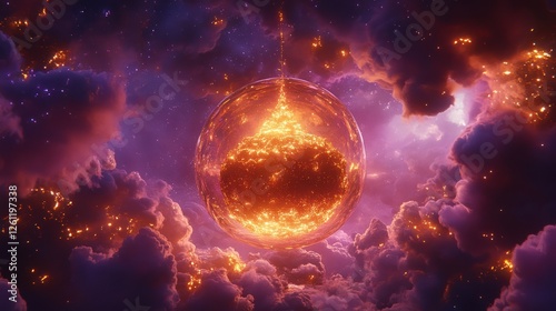 Obraz premium Fiery Orb Descends in Cosmic Cloudscape
