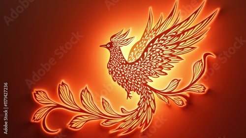 Obraz premium Fiery Phoenix Bird, Floral Design, Mythical - Mythical Creatures