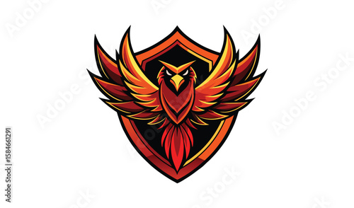 © Md, Obraz premium Fiery phoenix bird logo on a shield