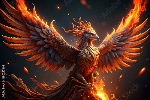 © Danicha, Fototapeta premium Fiery Phoenix Mascot: Majestic Bird of Fire Portrait
