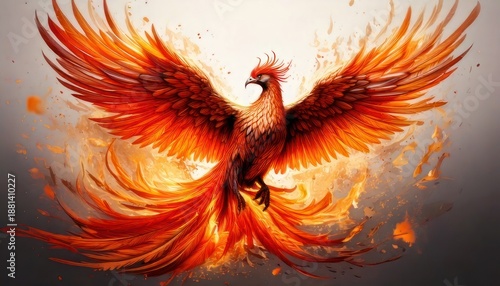 Obraz premium Fiery Phoenix Rising - A Symbol of Rebirth and Transformation.