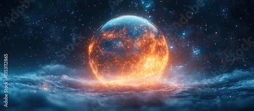 © Rania, Obraz premium Fiery Planet Above Cloudy Space