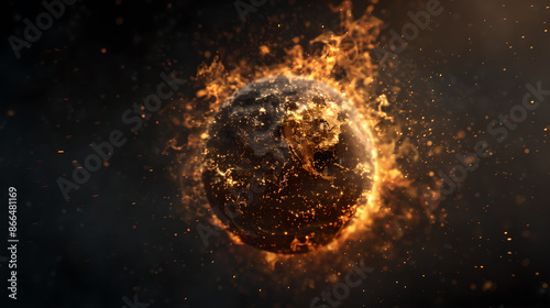 Obraz premium Fiery Planet Explosion in Dark Space