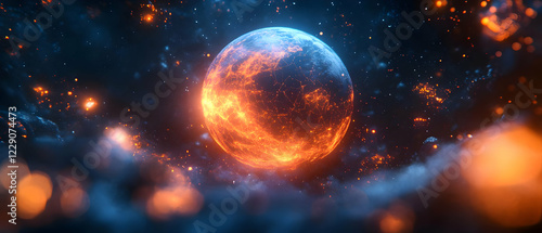 © SemangArt, Obraz premium Fiery planet space nebula cosmic background