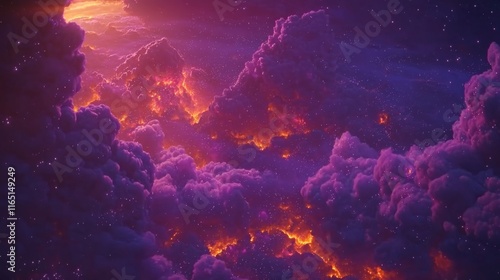Obraz premium Fiery Purple Nebula Cloudscape Cosmic Background Image