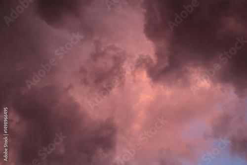 Obraz premium Fiery red storm clouds with dramatic lighting. Red storm clouds background....