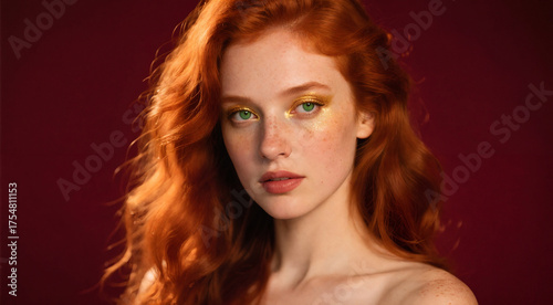 © Татьяна Медведцкая, Fototapeta premium Fiery Redhead Glam Studio Shot