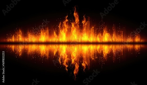 © Fajar, Naklejka premium Fiery Reflection on Black Background