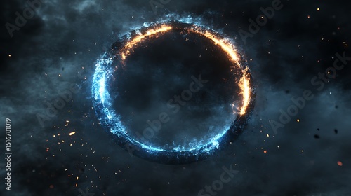 © Marifatul, Naklejka premium Fiery ring circle in dark clouds