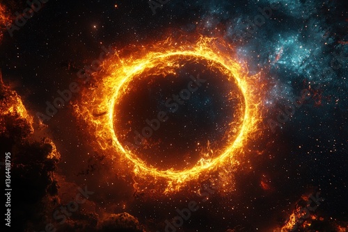 Obraz premium Fiery ring in cosmic clouds