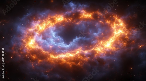 © rejeki, Obraz premium Fiery ring nebula in cosmic space.
