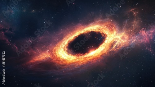 Obraz premium Fiery ring of cosmic energy in swirling nebula