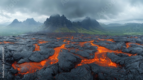 Naklejka premium Fiery rivers flow through volcanic terrain