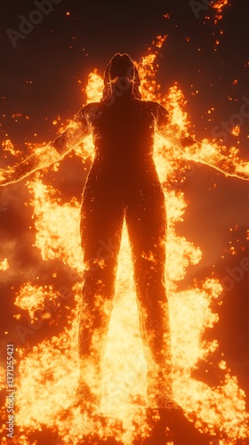 © Anugrah, Naklejka premium Fiery Silhouette Figure Night Sky
