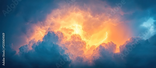 Fototapeta premium Fiery Sky, Lightning Storm, Dramatic Cloudscape