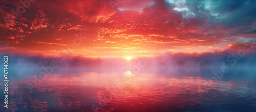 Fototapeta premium Fiery sky reflecting on a tranquil lake