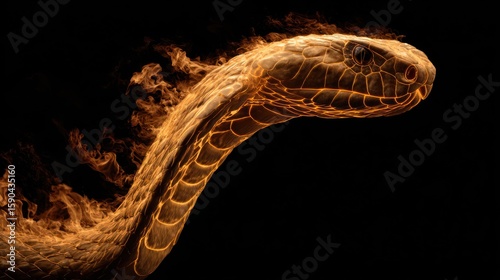 Naklejka premium Fiery snake digital artwork of a mythical serpent with flames on black