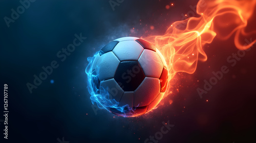 Fototapeta premium Fiery Soccer Ball Art: Dynamic Football with Blue and Red Flames -...