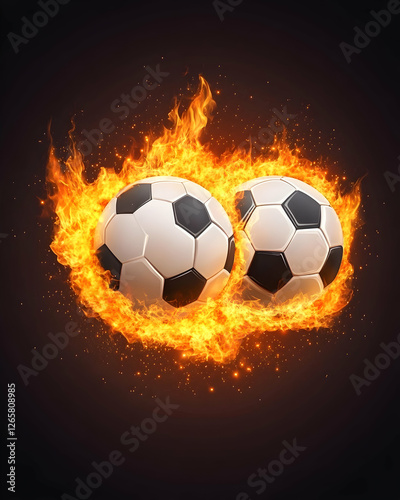 Fototapeta premium Fiery soccer balls, dark background, sports passion