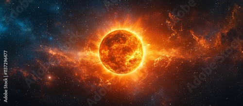 © Anusa, Obraz premium Fiery Solar Eclipse with Bright Flare and Starry Dark Cosmic Background