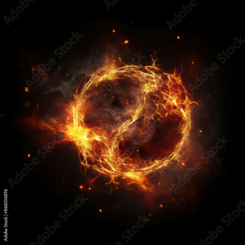 Obraz premium Fiery Sphere of Intense Flames in the Dark Void of Space