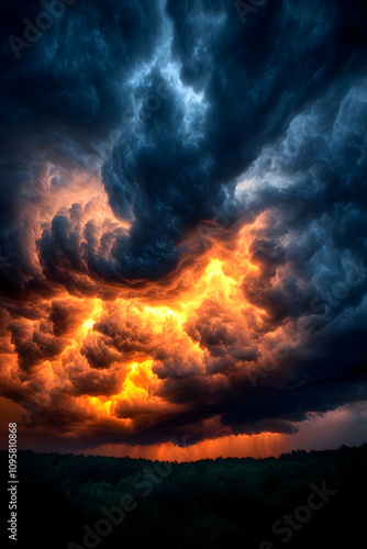 © Siasart Stock, Fototapeta premium Fiery Storm Cloudscape Illustration