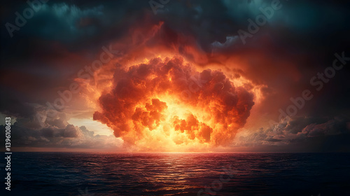 © artzone, Naklejka premium Fiery Storm Over The Sea
