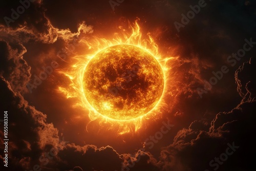 © Montaha Hossain, Obraz premium Fiery Sun Blazing Through Dark Clouds