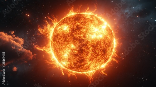 © Bebek, Obraz premium Fiery Sun in Cosmic Nebula