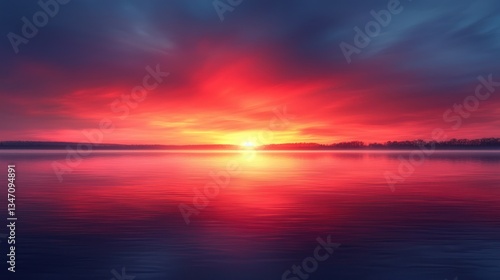 © foom7, Fototapeta premium Fiery sunrise over calm lake