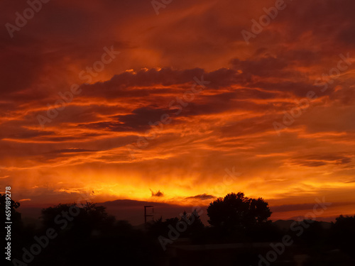 © Martn, Fototapeta premium Fiery Sunrise Sky with Dramatic Clouds