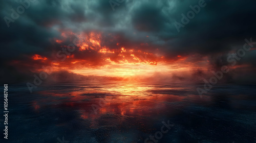 Obraz premium Fiery Sunset Clouds Above Dark Water Abstract Background