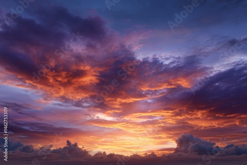 Obraz premium Fiery Sunset Cloudscape: A Dramatic and Colorful Celestial Canvas