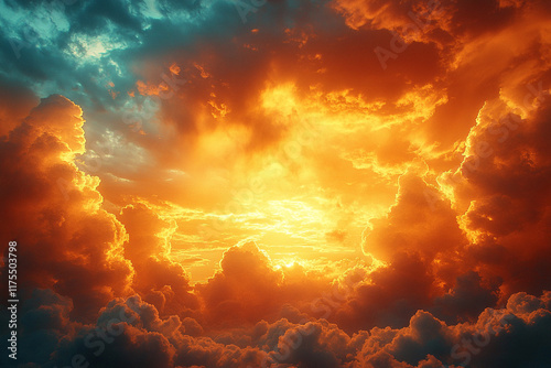 Fototapeta premium Fiery Sunset Cloudscape Dramatic Celestial Display