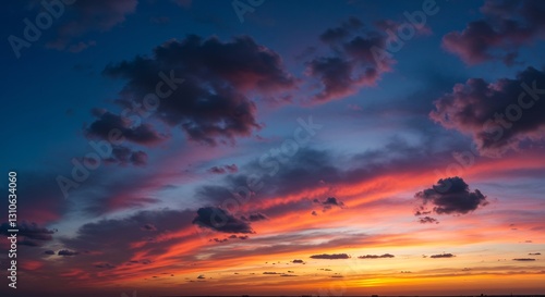 © Phung, Obraz premium Fiery sunset cloudscape dramatic vibrant colors. AI Generated