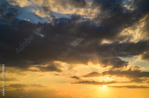 Fototapeta premium Fiery sunset, colorful clouds in the sky