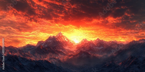 © Ali, Fototapeta premium Fiery sunset over a mountain range.