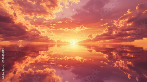 Fototapeta premium Fiery Sunset over Calm Ocean: A Serene Landscape